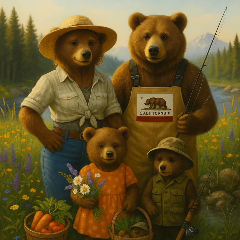 The Grizzlington family is the heart and soul of Red Sky Surf Hunters — a fun-loving bear clan that lives for adventure, fresh air, and sharing what they know. Cal, the fearless fishing dad, is always chasing the perfect cast along California’s coast. Sierra, “The Green Paw That Grows It All,” tends their garden with patience and care, teaching her cubs the magic of growing food and flowers. Their son River is the junior angler, learning every knot and tide trick from his dad, while Meadow, the littlest “Green Paw,” fills the garden with laughter, blooms, and butterflies. Together, they camp, fish, garden, and explore — inspiring families everywhere to connect with nature and each other.